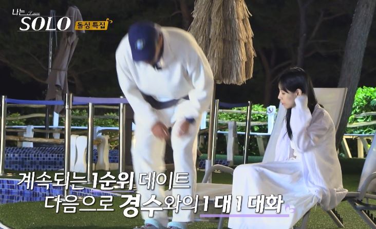 옥순은 첫날 경수가 정희의 고추를 먹은 사건을 들춰냈다. "그거 그냥 다 꼬시고 다니는 거 아니냐?"라고 날카롭게 물으며, 그 행동이 자신을 소외시키는 느낌을 줬다고 밝혔다. 경수는 당황한 듯 "그건 그냥 놀려고 그런 거지, 어떻게 그걸로 여자를 꼬시냐"고 답했지만, 옥순은 "그게 더 짜증난다"며 경수를 몰아붙였다.