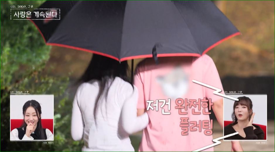 방송에서 비 오는 날 우산을 함께 쓰며 걸어가는 모습은 마치 로맨스 영화의 한 장면 같았어요.