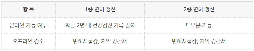 주의: 1종 면허는 최근 2년 내 건강검진 기록이 있어야 온라인 갱신이 가능합니다.
