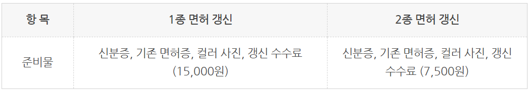 항목1종 면허 갱신2종 면허 갱신