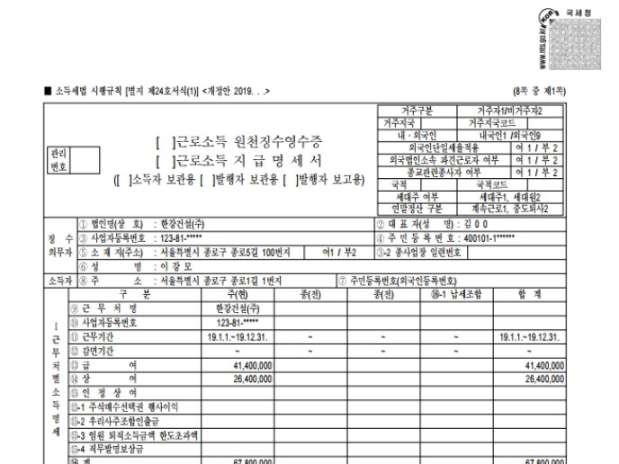 - 근로소득원천징수영수증: 연말정산과 이직 시 연봉 협상에 유용하게 쓰입니다.