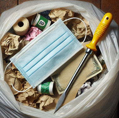 종량제봉투에 공기가 가득 차 있어서 그 공간을 활용하지 못하는 경우가 많아요. 하지만 송곳으로 구멍을 뚫어주면 공기가 빠져나가면서 더 많은 쓰레기를 담을 수 있게 되는 거죠. 공기가 빠진 자리에 쓰레기가 들어가니까, 같은 봉투로 거의 두 배에 달하는 양을 담을 수 있는 거예요!