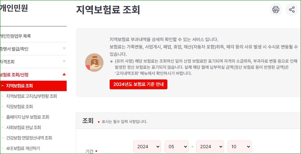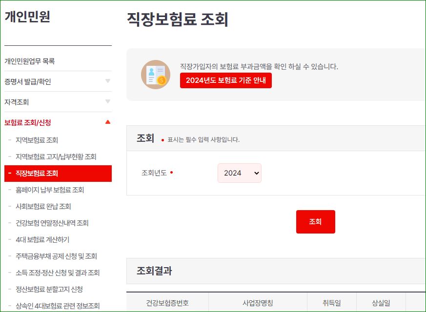 건강보험료 조회 바로 가기
